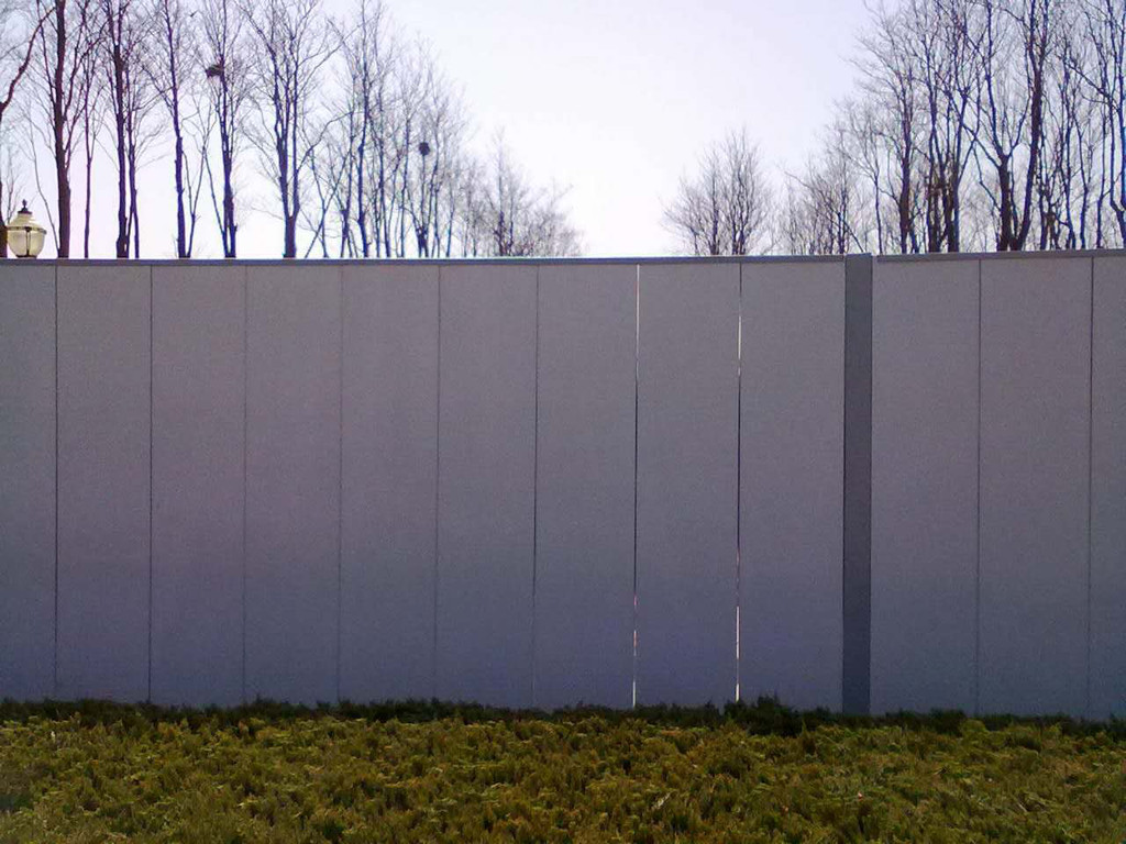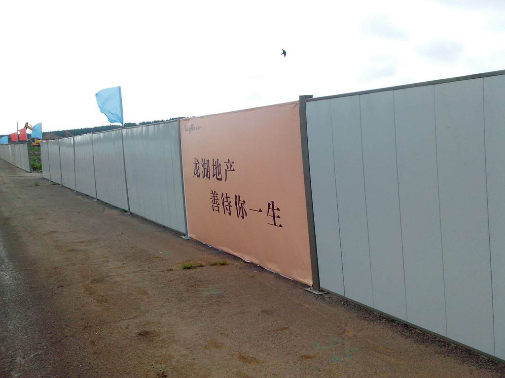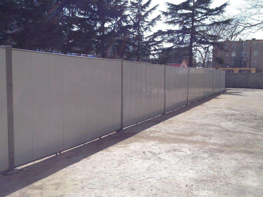 1、 新型彩钢围挡采用强度和外形稳定性更好的C型镀锌槽钢做为围挡背筋龙骨,并在龙骨上冲压出板面嵌入式卡扣,围挡彩钢面板与龙骨通过卡扣结合成一个整体,结构更简单、强度更好。