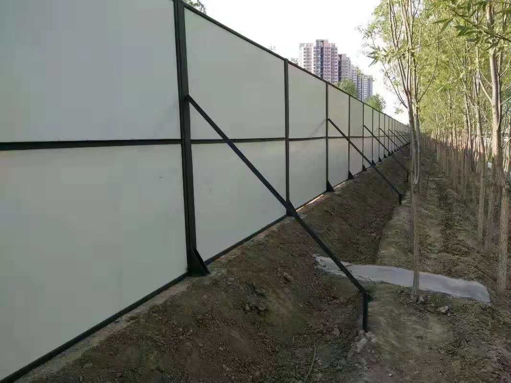 4、 新型彩钢围挡的结构强度增加:采用结构强度更高的镀锌C型槽钢做背筋龙骨,抗风和抗冲击性能优于传统角钢背筋;