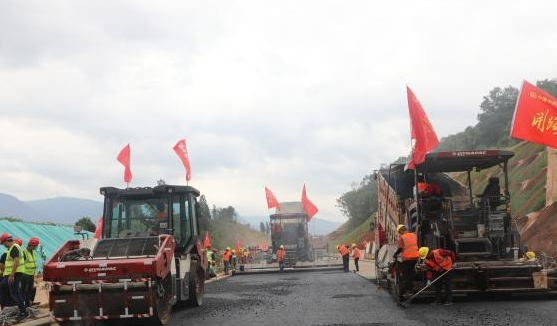 6月23日,由中铁五局承建的昆倘高速公路沥青路面首铺成功。