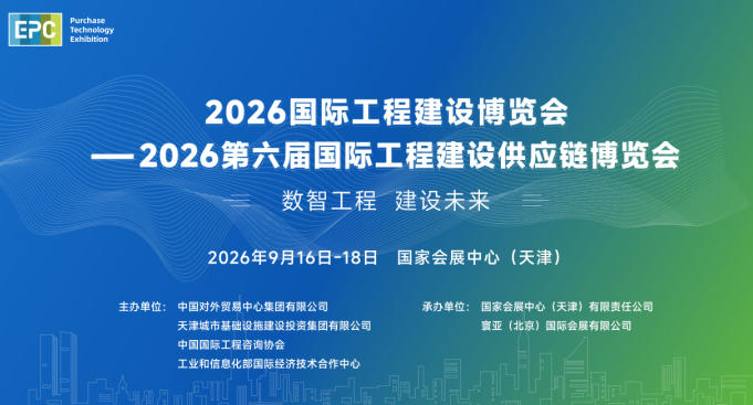 为深入贯彻党的二十届四中全会关于“加快构建新发展格局、扩大高水平对外开放”“推动绿色低碳发展、建设现代化产业体系的战略部署”的战略部署,落实“十五五”规划建议中“建设现代化基础设施体系、增强产业链供应链韧性”的核心要求,进一步强化国际工程建设供应链协同效能,助力京津冀区域基础设施互联互通与高质量发展,由中国对外贸易中心集团有限公司、天津城市基础设施建设投资集团有限公司、中国国际工程咨询协会、工业和信息化部国际经济技术合作中心等联合主办,国家会展中心(天津)有限责任公司、寰亚(北京)国际会展有限公司(国际工程)等承办的2026国际工程建设博览会、2026第六届国际工程建设供应链博览会(以下简称博览会)定于2026年9月16至18日在国家会展中心(天津)举办,同期将举办2026绿色低碳博览会。本届博览会将聚焦工程建设智能化、绿色化、融合化发展趋势,集中展示中国建造、智慧建造、绿色建材等尖端成果,设置智能建造、绿色节能建材、工程服务等展区,贯通产业链条,助力中国技术、装备与服务依托“一带一路”走向世界,提升行业供应链韧性与全球竞争力。