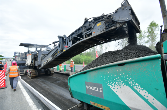 更重要的是,与传统维修方案相比,采用以W 380 CR就地冷再生技术为核心的再生方案,可实现节约工期约 50 %,节省成本约 25%,可减少加热能源消耗 60%以上,降低二氧化碳排放量 80% 以上,凸显了新技术、新工艺、新装备与新材料带来的良好经济和环保效益。