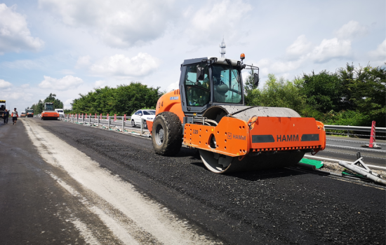 碾压:摊铺机后紧跟悍马单钢轮压路机、胶轮压路机、双钢轮压路机,对冷再生材料进行初压、复压和终压,形成高密实度的冷再生结构层。