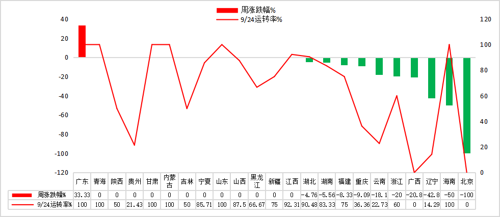 截至9月23日,据百年建筑网所调研水泥熟料企业开工率和产能利用率情况显示,全国水泥熟料企业开工率79.2%,较上周上升5.11%;熟料线运转率68.8%,较上周上升2.77%;水泥熟料产能利用率69.33%,较上周上升3.72%。