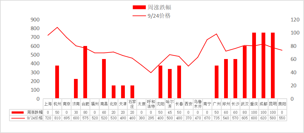 西南地区:在能耗双控政策下,部分地区本月水泥产量大幅收缩80%,绝大多数水泥企业停产停窑,水泥价格大幅上涨,部分水泥厂家反馈已无货可发,预计下周西南地区水泥价格继续强势上行。