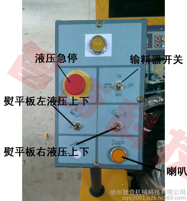 2).后控制面板 液压急停、熨平板左液压升降、熨平板右液压升降、输料器开关。