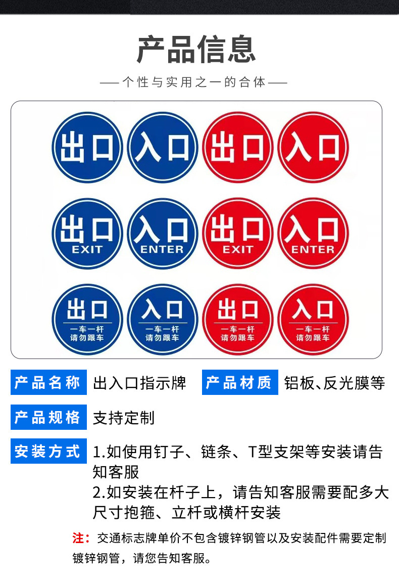 厂家生产 铝板指示牌 出入口标识牌 反光标志牌 加工定制,交通安全标识,交通设施,,路面建材云产品供应路面建材云