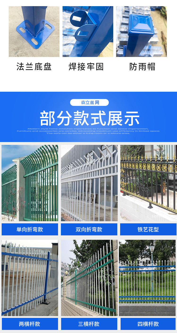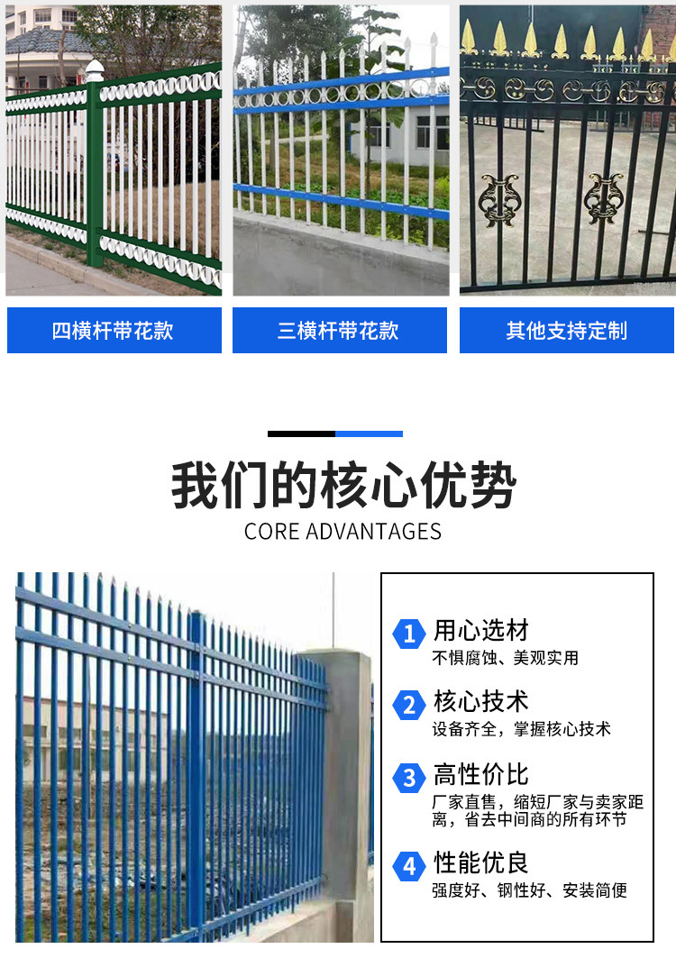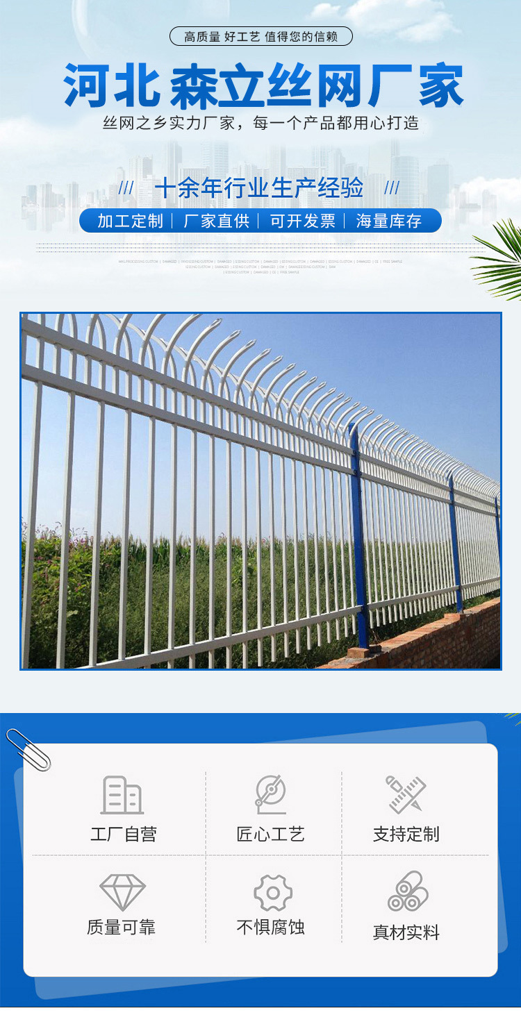锌钢围墙护栏铁艺围栏厂区护栏隔离栅防盗墙护栏市政道路围栏