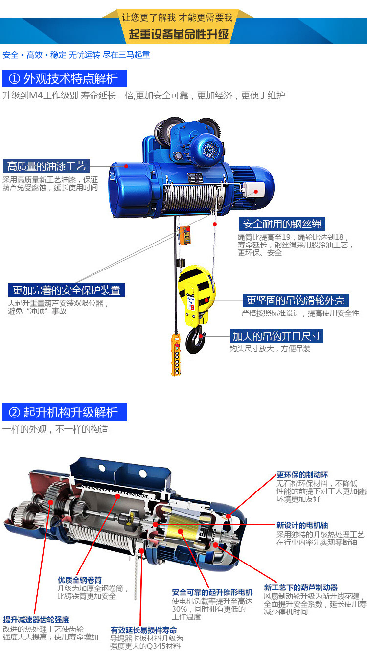 钢丝绳电动葫芦行车吊机CDII2T6M行业M4工作级别电动葫芦