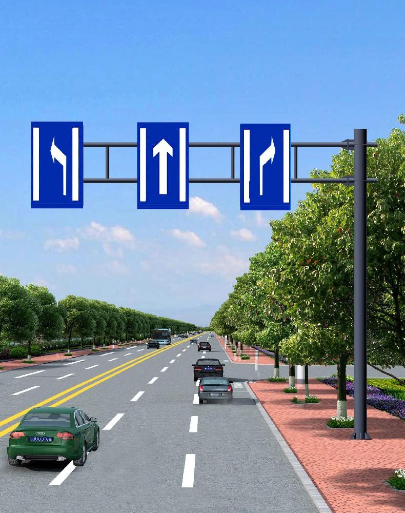 标志杆柱分类交通标志杆柱式一般有单柱式交通标志杆、多柱式交通标志杆。[1]柱式标志之内边缘不应侵入道路建筑限界,一般距车行道或人行道的外侧边缘或土路肩不小于25cm交通标志板下缘距路面的高度一般为150cm~250cm。设置在小型车比例较大的城市道路时,下缘距地面的高度可根据实际情况见效,但不宜小于120cm。设置在有行人、非机动车的路侧时,设置高度应大于180cm。单柱式交通标志杆单柱式交通标志杆是标志板安装在一根立柱上,适用于中、小型尺寸的警告、禁令、指示标志和小型指路标志。多柱式交通标志杆多柱式交通标志杆是标志板安装在两根及两根以上立柱上,是适用于长方形的指示或指路标志。臂式交通标志杆悬臂式交通标志杆——F型交通标志杆、T型交通标志杆悬臂式交通标志杆是标志板安装于悬臂上,标志下缘离地面的高度应大于该道路规定的净空高度。