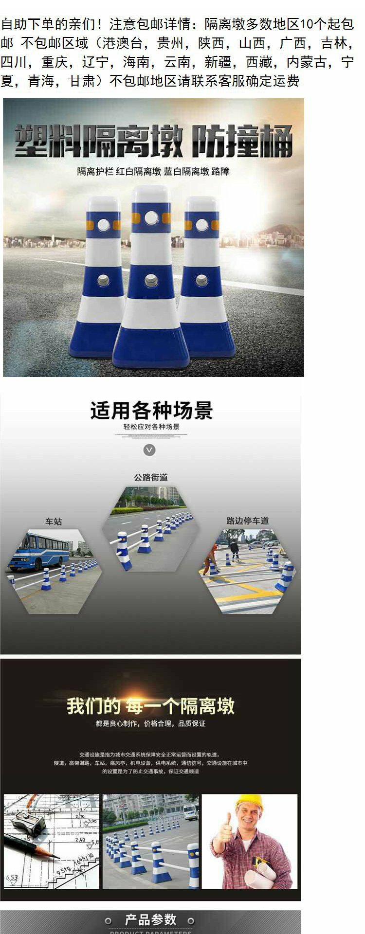 红白全新料,蓝白全新料,2米连接杆红,2米连接杆蓝,隔离墩堵头红,隔离墩堵头蓝