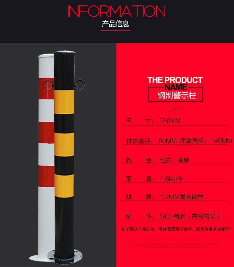 全新钢管警示柱铁立柱反光路桩道路隔离防撞安全挡车柱直销