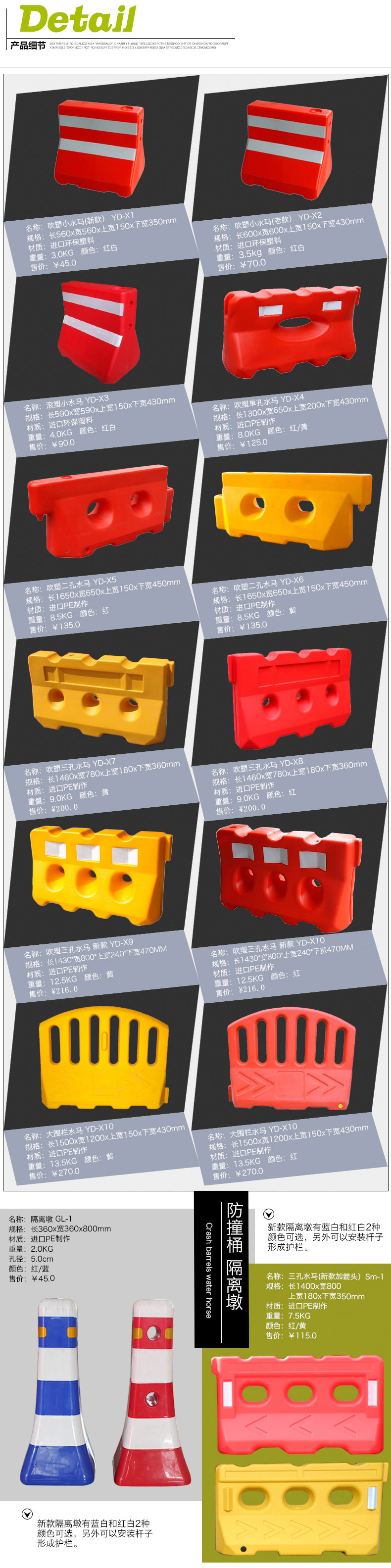 三孔水马-4kg红色,三孔水马4kg黄色,提环小水马,60*80吹塑防撞桶-黄,小水马,滚塑-三孔水马-红130cm,滚塑-三孔水马-黄130cm,黄色伸缩围栏,中围挡,大围挡,60*80桶-蓝,57*82滚塑桶,85*90滚塑桶,三孔水马-5kg-普通料-红色,三孔水马-6kg-红色,三孔水马-7kg红色,三孔-8kg红色,三孔-5kg-新料-红色,三孔水马-6kg新料红色,三孔-7kg新料红色,三孔-8kg-新料-红色,三孔水马-5kg-黄色,三孔-6kg黄色,三孔-7kg-黄色,三孔水马-8kg-黄色,三孔-5kg-新料-黄色,三孔水马-6kg-新料-黄色,三孔水马-7kg-新料-黄色,三孔水马-8kg-新料-黄色,滚塑-三孔水马-白,黄黑隔离墩,一体黄白隔离墩,红色伸缩围栏,40*70吹塑防撞桶-黄,40*70吹塑防撞桶-蓝,滚塑水马-红146cm,滚塑水马-黄146cm,40*70滚塑防撞桶,船型防撞桶,栅格大围挡