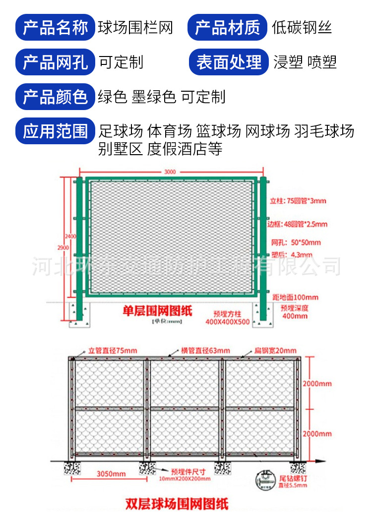 厂家定制球场护栏网低碳钢丝运动场篮球场隔离网浸塑勾花网,围栏,护栏,,路面建材云产品供应路面建材云