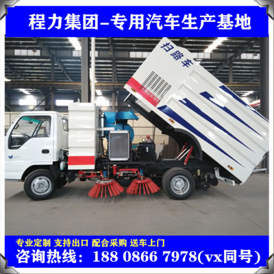 上装标配:带4个扫盘、江铃77马力副发动机、三洋马达、施耐德控制开关、海普瑞斯电磁阀组、无级变速自动离合器、免维护离心式自动风机、不锈钢垃圾箱、尾部LED箭头指示灯、中联北极星电子水泵,手动泵应急系统、垃圾举升自卸功能。