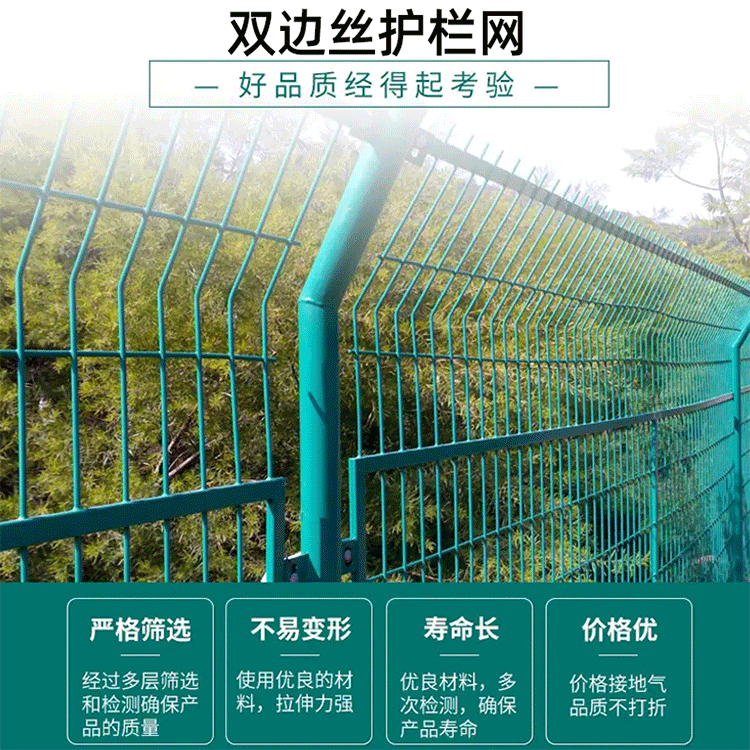 定制高速公路护栏网框架围栏绿色浸塑双边丝隔离栅折弯铁丝护栏网,护栏网,路基材料,,路面建材云产品供应路面建材云