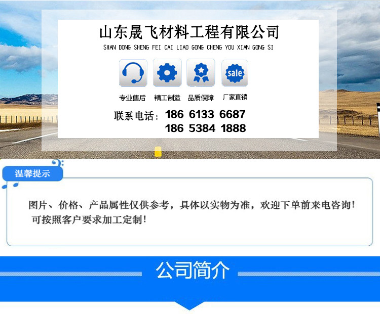 公司主要生产销售:灌缝机、灌缝胶、防裂贴、钢塑格栅、玻纤土工格栅、凸结点钢塑格栅、塑料土工格栅、塑料排水板、土工布、土工膜、软式透水管、膨润土防水毯等系列土工材料,产品质量合格,规格齐全,信誉良好,是经过山东交通部门认证的诚信企业。产品具有应用领域广、耐久性能好、耐腐蚀、环保等特点,主要应用于垃圾掩埋场、尾矿坝、公路、铁路、水利、电力、水土保持及环境绿化与基础建设领域。